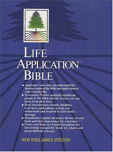 Product Description The Life Application Bible is today's #1 selling study Bible because it helps people see how the Scriptures are relevant to today's issues. The one-of-a-kind notes and the popular New King James Version challenge people to apply the Scripture to everyday life. Special Features: New King James Version Thousands of Life Application notes help explain God's Word and challenge readers to apply the truth of Scripture to life Personality profiles highlight over 100 important Bible characters Book introductions provide vital statistics, overview, and timeline to help readers understand the message of each book MegaThemes relate significant book themes to everyday life 200 thumbnail maps highlight important Bible places and events 260 charts help explain difficult concepts and relationships Cross-references Harmony of the Gospels built right into the text of Matthew, Mark, Luke, and John Topical index to all notes, charts, maps, and profiles Bonded leather editions include ribbon marker ...